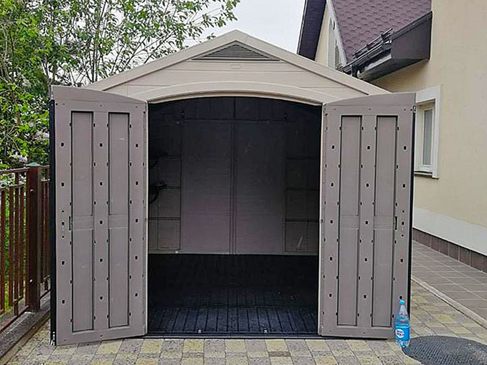 Сарай из высококачественного пластика, не подвержен деформации и устойчив в условиях высокой ветренности, жары и высокой влажности. В конструкции используются стальные стержни, что усиливает конструкцию, а прочный и плотный пластика не дает деформироваться конструкции.